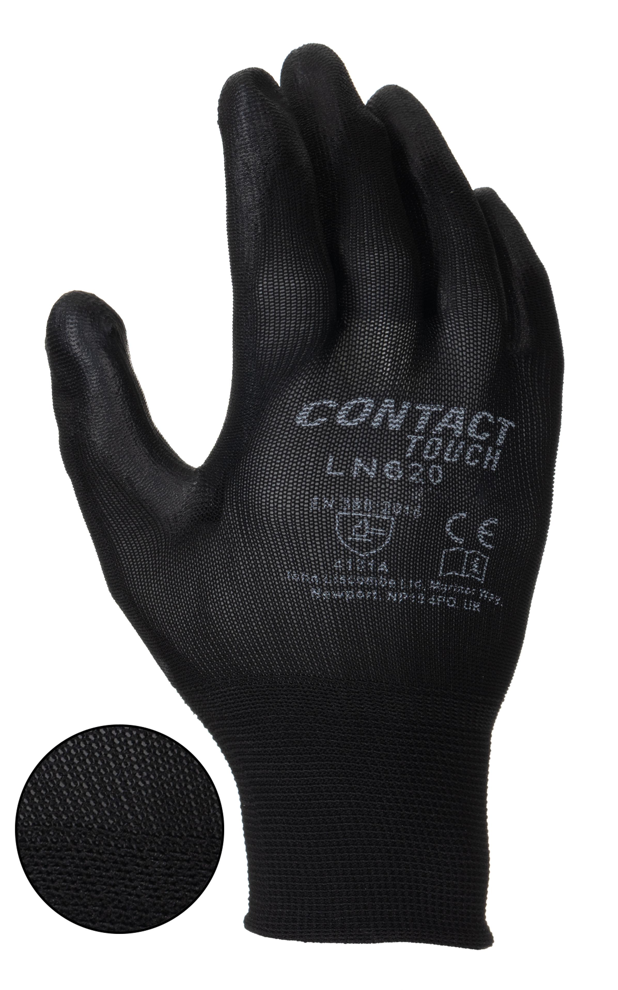 This is Contact Touch Black Polyurethane Coated Nylon Work Gloves Size 9 Large manufactured by Liscombe. The manufacturer part number is LN620-09. Additionally, its glove is made using nylon material . Whereas, its glove coating is of polyurethane . It features contact touch range. The primary recommended applications for the glove is cut resistant . The main colour of the glove is black . The glove has a 9, large size.
