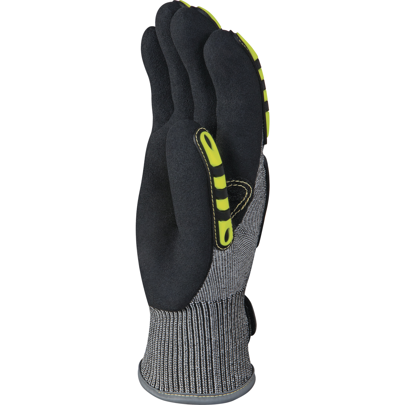 This is EOS Yellow-Grey-Black Cut Resistant Gloves Size 10 Large High performance Polyethylene fibres Lining manufactured by Delta Plus. The manufacturer part number is VV913JA10. It complies with EN407 Thermal standards no . It is compliant with EN374 Chemical standard no . Whereas, its glove coating is of nitrile . It has 4 EN388 tear standard . It includes 1pair gloves . It complies with EN511 Cold no . The main colour of the glove is grey . The primary recommended applications for the glove is cut resistant . It has 4 EN388 Puncture standard . It features eos range. It has 4 EN288 abrasion standard . Additionally, its glove is made using nitrile material . The glove has a 10 size. The product complies with EN 61340-5-1 standard no . It has an American safety standard yes .