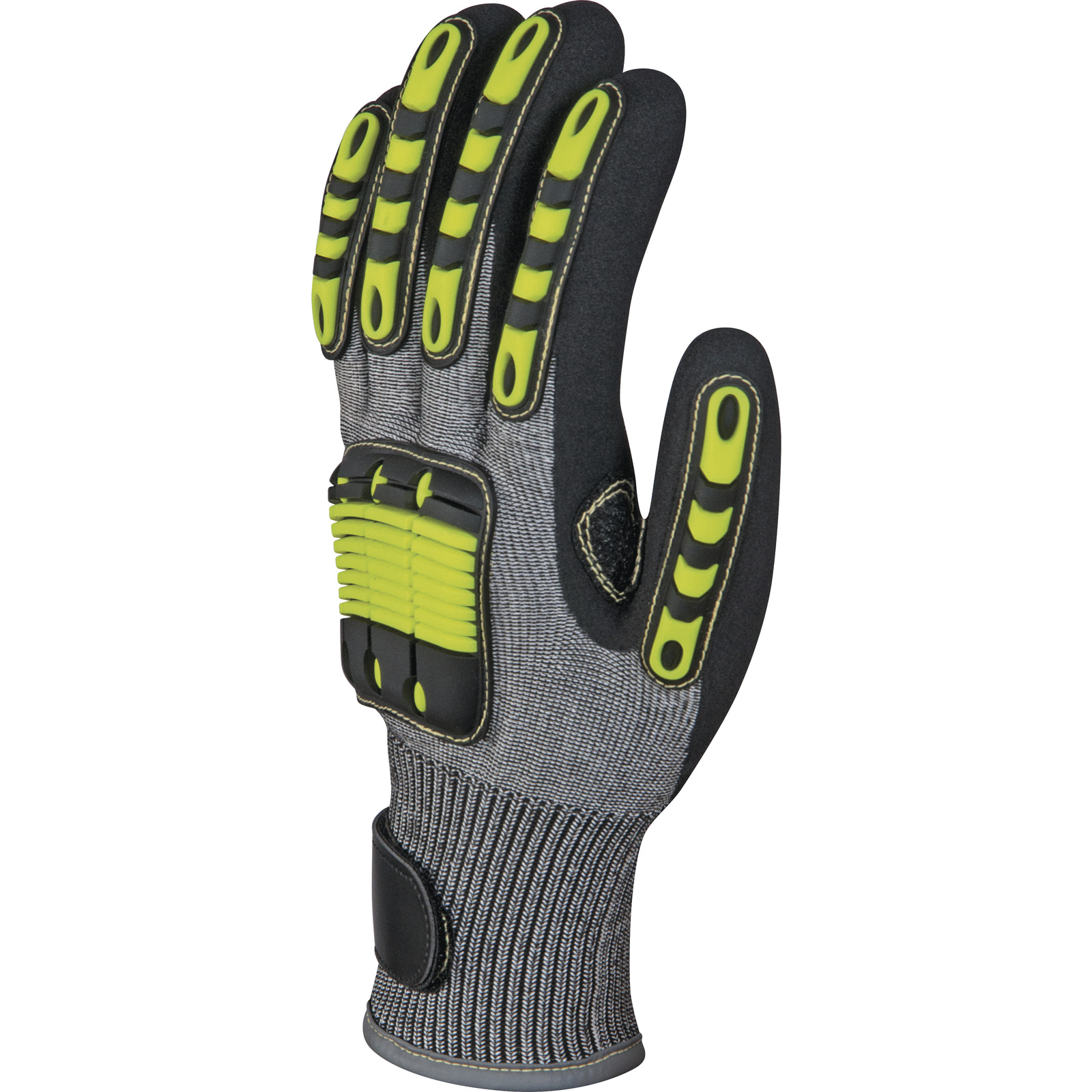 This is EOS Yellow-Grey-Black Cut Resistant Gloves Size 11 XL High performance Polyethylene fibres Lining manufactured by Delta Plus. The manufacturer part number is VV913JA11. It complies with EN407 Thermal standards no . It is compliant with EN374 Chemical standard no . Whereas, its glove coating is of nitrile . It has 4 EN388 tear standard . It includes 1pair gloves . It complies with EN511 Cold no . The main colour of the glove is grey . The primary recommended applications for the glove is cut resistant . It has 4 EN388 Puncture standard . It features eos range. It has 4 EN288 abrasion standard . Additionally, its glove is made using nitrile material . The glove has a 11 size. The product complies with EN 61340-5-1 standard no . It has an American safety standard yes .