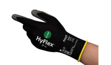 This is HyFlex Black Abrasion Resistant Mechanical Protection Silicone Free Work Gloves Size 9 Nylon Lining Polyurethane manufactured by Ansell. The manufacturer part number is 11-421 S9. It complies with EN407 Thermal standards no . It is compliant with EN374 Chemical standard no . It has a/an 1 EN 388 blade standard . It has 2 EN388 tear standard . It complies with EN511 Cold no . The main colour of the glove is black . The primary recommended applications for the glove is abrasion resistant, mechanical protection, silicone free . It has 1 EN388 Puncture standard . It features hyflex range. It has 3 EN288 abrasion standard . Additionally, its glove is made using nylon material . The glove has a 9, large size. Whereas, its glove coating is of polyurethane .