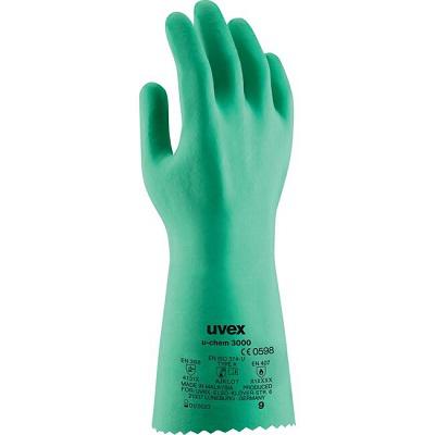 This is Green Cotton Chemical Resistant Work Gloves Size 10 NBR Coating manufactured by Uvex. The manufacturer part number is 6096110. It complies with EN407 Thermal standards yes . It is compliant with EN374 Chemical standard yes . It has a/an 1 EN 388 blade standard . It has 3 EN388 tear standard . It complies with EN511 Cold no . The main colour of the glove is grey . It has 1 EN388 Puncture standard . The primary recommended applications for the glove is chemical resistant . It has 4 EN288 abrasion standard . Additionally, its glove is made using cotton material . The glove has a 10, xl size. Whereas, its glove coating is of nitrile .