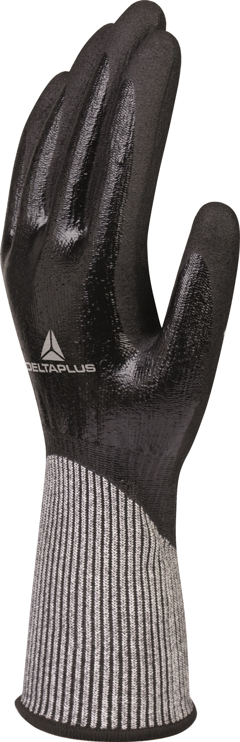 This is Black Fibres Cut Resistant General Handling Gloves Size 8 Nitrile Coating manufactured by Delta Plus. The manufacturer part number is VECUTD04NO08. It complies with EN407 Thermal standards no . It is compliant with EN374 Chemical standard no . Whereas, its glove coating is of nitrile . It has 4 EN388 tear standard . It complies with EN511 Cold no . The main colour of the glove is black . The product complies with EN 61340-5-1 standard no . It has 3 EN388 Puncture standard . The primary recommended applications for the glove is cut resistant . It has 3 EN288 abrasion standard . Additionally, its glove is made using nitrile material . The glove has a 8, medium size.