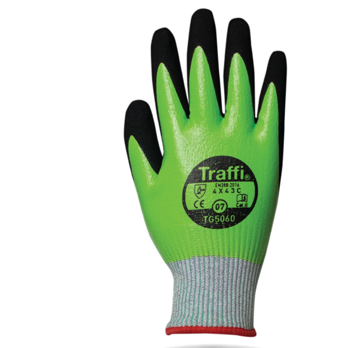 This is Green Nitrile Nylon Cut Resistant Cut Resistant Gloves Size 8 Nitrile Coating manufactured by Traffi. The manufacturer part number is TG5060-08. Additionally, its glove is made using nitrile, nylon material . Whereas, its glove coating is of nitrile . It includes 1pair gloves . The primary recommended applications for the glove is cut resistant . The main colour of the glove is green . The glove has a 8 size.