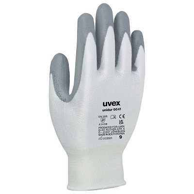 This is Grey White Abrasion Resistant Cut Resistant Work Gloves Size 8 Polyurethane Coating manufactured by Uvex. The manufacturer part number is 6021008. It complies with EN407 Thermal standards no . It is compliant with EN374 Chemical standard no . Whereas, its glove coating is of polyurethane . It has 4 EN388 tear standard . It includes 1pair gloves . It complies with EN511 Cold no . The main colour of the glove is grey . The primary recommended applications for the glove is abrasion resistant, cut resistant . It has 3 EN388 Puncture standard . It features unidur 6641 range. It has 4 EN288 abrasion standard . Additionally, its glove is made using elastane, hpe material . The glove has a 8 size. The product complies with EN 61340-5-1 standard no .