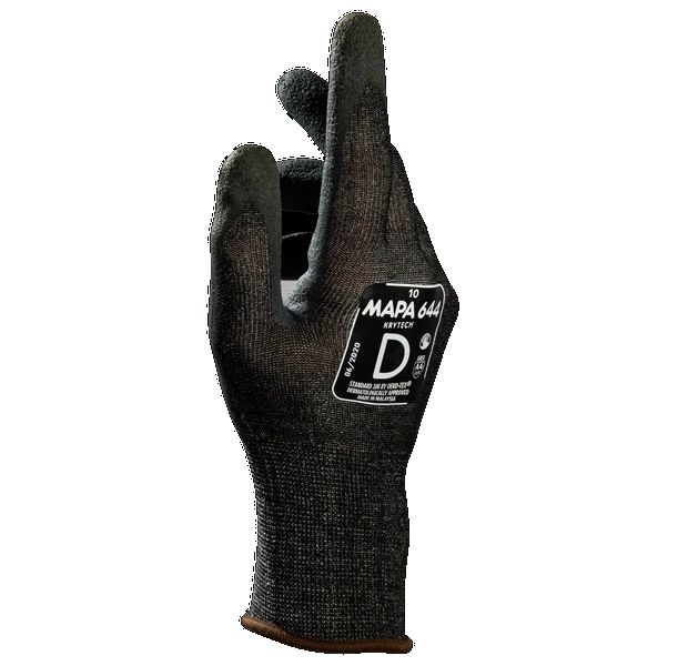 This is Black Grey Nitrile Cut Resistant Gloves Size 8 manufactured by Mapa. The manufacturer part number is 644 8. Additionally, its glove is made using nitrile material . The primary recommended applications for the glove is cut resistant . The glove has a 8 size. The main colour of the glove is black, grey .