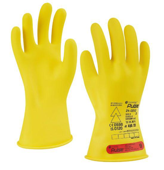 This is Pulse Yellow Rubber Electrical Safety Electrical Insulating Gloves Size 8 Medium Latex Coating manufactured by Tilsatec. The manufacturer part number is 24-0012-08. Additionally, its glove is made using rubber material . Whereas, its glove coating is of latex . The primary recommended applications for the glove is electrical safety . It features pulse range. The main colour of the glove is yellow . The glove has a 8 size.