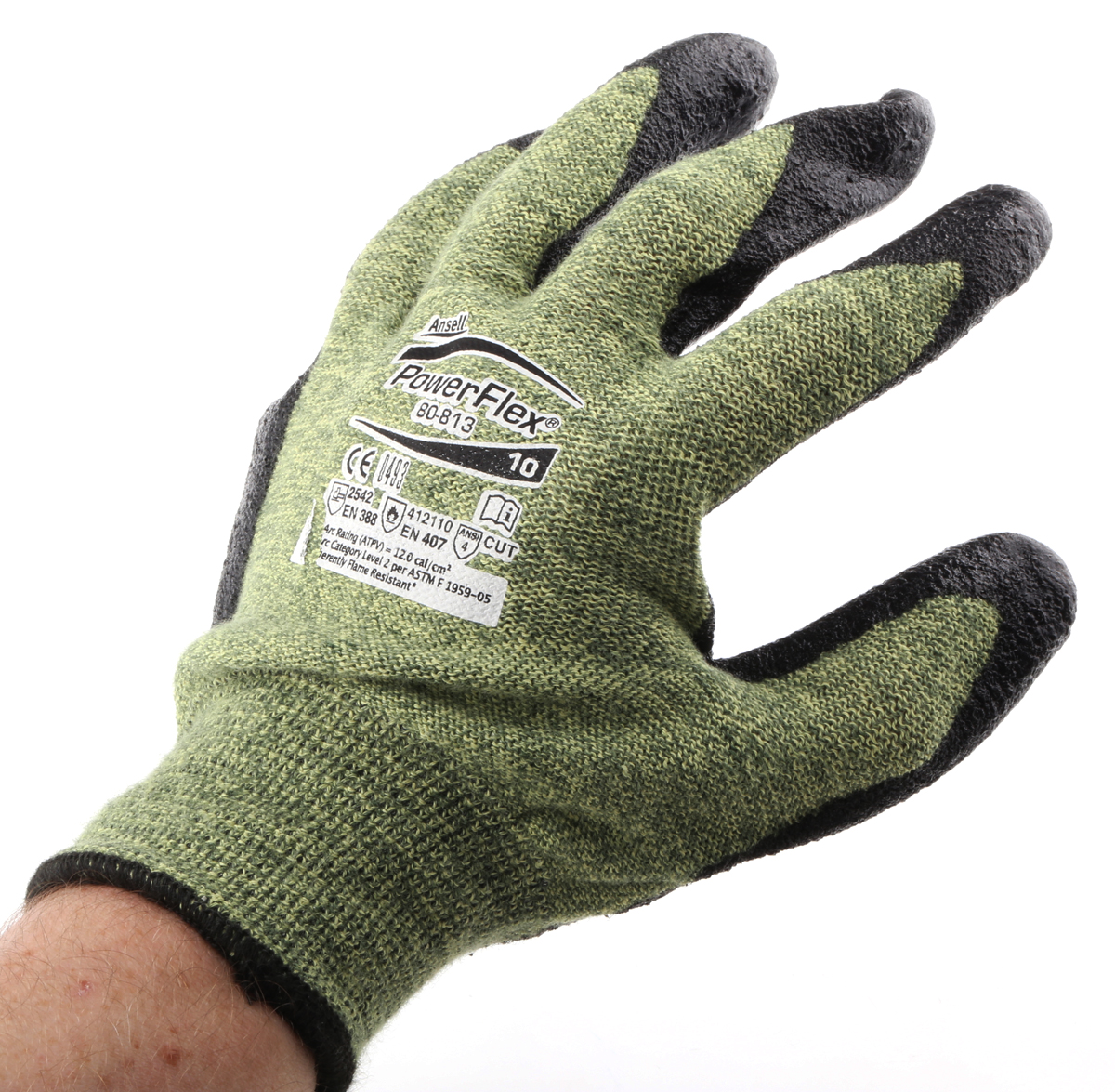 This is Hynit Green Kevlar Heat Resistant Work Gloves Size 10 Large Neoprene Coating manufactured by Ansell. The manufacturer part number is 80813100. It complies with EN407 Thermal standards no . It is compliant with EN374 Chemical standard no . Whereas, its glove coating is of neoprene . It has 4 EN388 tear standard . It includes 1pair gloves . It complies with EN511 Cold no . The main colour of the glove is green . The primary recommended applications for the glove is heat resistant . It has 2 EN388 Puncture standard . It features hynit range. It has 2 EN288 abrasion standard . Additionally, its glove is made using kevlar material . The glove has a 10 size. The product complies with EN 61340-5-1 standard no .