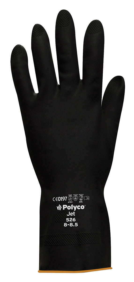 This is Jet Black Black Latex Chemical Resistant Work Gloves Size 7 Small Latex Coating manufactured by Polyco Healthline. The manufacturer part number is 525. It complies with EN407 Thermal standards no . It is compliant with EN374 Chemical standard yes . Whereas, its glove coating is of latex . It has 3 EN388 tear standard . It includes 12pairs gloves . It complies with EN511 Cold no . The main colour of the glove is black . The primary recommended applications for the glove is chemical resistant . It has 1 EN388 Puncture standard . It features jet black range. It has 4 EN288 abrasion standard . Additionally, its glove is made using latex material . The glove has a 7, small size. The product complies with EN 61340-5-1 standard no .