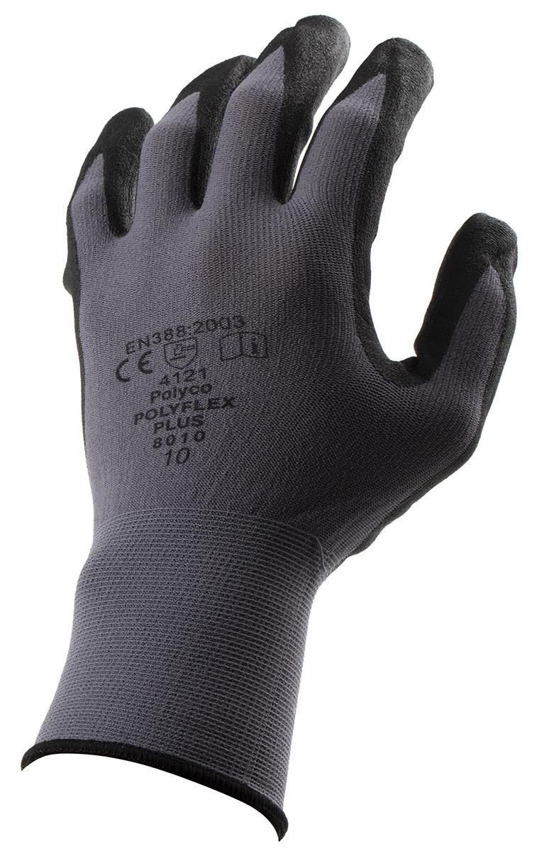 This is Polyflex Plus Grey Nitrile Mechanic Work Gloves Size 10 Large Nitrile Foam Coating manufactured by Polyco Healthline. The manufacturer part number is 8010. It complies with EN407 Thermal standards no . It is compliant with EN374 Chemical standard no . Whereas, its glove coating is of nitrile foam . It has 2 EN388 tear standard . It includes 1pair gloves . It complies with EN511 Cold no . The main colour of the glove is grey . The primary recommended applications for the glove is mechanic . It has 2 EN388 Puncture standard . It features polyflex plus range. It has 4 EN288 abrasion standard . Additionally, its glove is made using nitrile material . The glove has a 10, large size. The product complies with EN 61340-5-1 standard no .