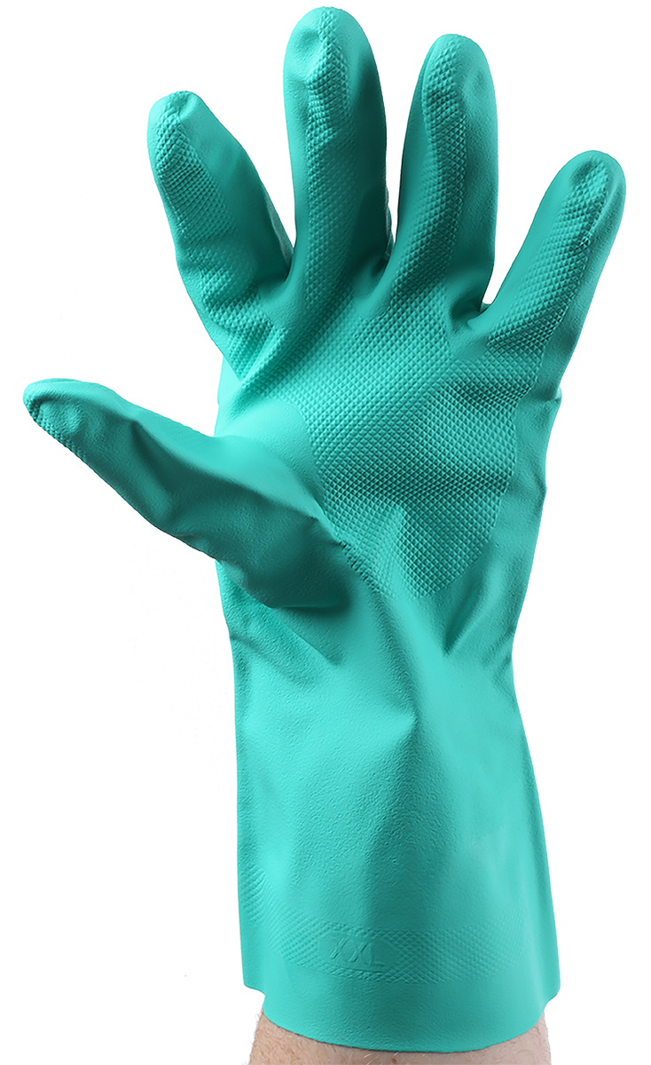 This is Green Nitrile Chemical Resistant Work Gloves Size 10 Large Nitrile Coating manufactured by Polyco Healthline. The manufacturer part number is 927. It complies with EN407 Thermal standards no . It is compliant with EN374 Chemical standard yes . Whereas, its glove coating is of nitrile . It has 0 EN388 tear standard . It includes 12pairs gloves . It complies with EN511 Cold no . The main colour of the glove is green . The product complies with EN 61340-5-1 standard no . It has 1 EN388 Puncture standard . The primary recommended applications for the glove is chemical resistant . It has 4 EN288 abrasion standard . Additionally, its glove is made using nitrile material . The glove has a 10, large size.
