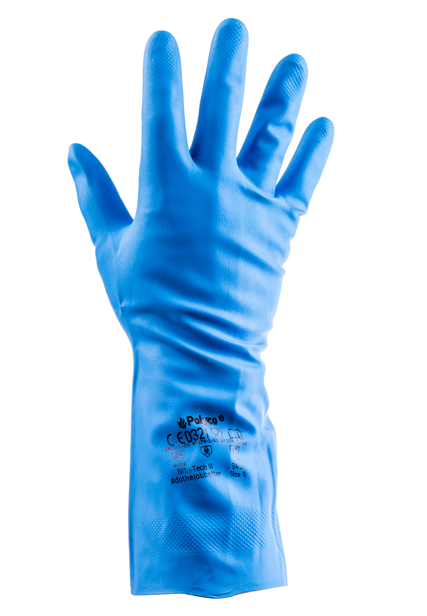 This is Blue Nitrile Chemical Resistant Work Gloves Size 8 Medium Nitrile Coating manufactured by Polyco Healthline. The manufacturer part number is 945. It complies with EN407 Thermal standards no . It is compliant with EN374 Chemical standard yes . Whereas, its glove coating is of nitrile . It has 0 EN388 tear standard . It includes 12pairs gloves . It complies with EN511 Cold no . The main colour of the glove is blue . The product complies with EN 61340-5-1 standard no . It has 1 EN388 Puncture standard . The primary recommended applications for the glove is chemical resistant . It has 4 EN288 abrasion standard . Additionally, its glove is made using nitrile material . The glove has a 8, medium size.