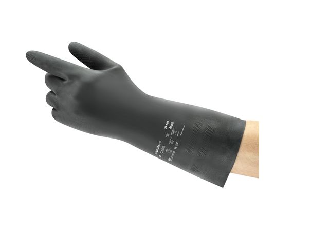 This is AlphaTec Black Latex Chemical Resistant Gloves Size 10 XL Latex Neoprene Coating manufactured by Ansell. The manufacturer part number is 29500100. It complies with EN407 Thermal standards no . It is compliant with EN374 Chemical standard yes . It has a/an 1 EN 388 blade standard . It has 2 EN388 tear standard . It complies with EN511 Cold no . The main colour of the glove is black . The primary recommended applications for the glove is chemical resistant . It has 1 EN388 Puncture standard . It features alphatec range. It has x EN288 abrasion standard . Additionally, its glove is made using latex material . The glove has a 10, xl size. The product complies with EN 61340-5-1 standard no . Whereas, its glove coating is of latex, neoprene .