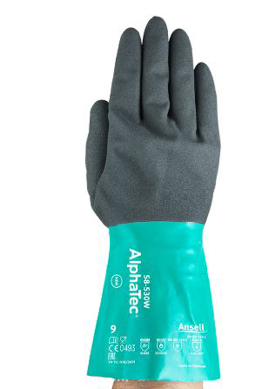 This is AlphaTec 58-535W Green Nylon Abrasion Resistant Chemical Resistant Gloves Size 11 Nitrile Coating manufactured by Ansell. The manufacturer part number is 58-530W-11. It complies with EN407 Thermal standards no . It is compliant with EN374 Chemical standard yes . It has a/an 1 EN 388 blade standard . It has 3 EN388 tear standard . It complies with EN511 Cold no . The main colour of the glove is green . The primary recommended applications for the glove is abrasion resistant, chemical resistant . It has 2 EN388 Puncture standard . It features alphatec 58-535w range. It has 3 EN288 abrasion standard . Additionally, its glove is made using nylon material . The glove has a 11 size. The product complies with EN 61340-5-1 standard no . Whereas, its glove coating is of nitrile .