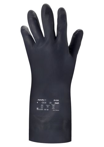 This is Gloves Neotop Black - Size 8 manufactured by Ansell. The manufacturer part number is 29500080BP. It complies with EN407 Thermal standards no . It is compliant with EN374 Chemical standard yes . Whereas, its glove coating is of latex, neoprene . It has 0 EN388 tear standard . It includes 1pair gloves . It complies with EN511 Cold no . The main colour of the glove is black . The primary recommended applications for the glove is chemical resistant . It has 1 EN388 Puncture standard . It features 29-500 range. It has 2 EN288 abrasion standard . Additionally, its glove is made using latex material . The glove has a 8 size. The product complies with EN 61340-5-1 standard no . It has an additional EN standards of en iso 21420:2020 .