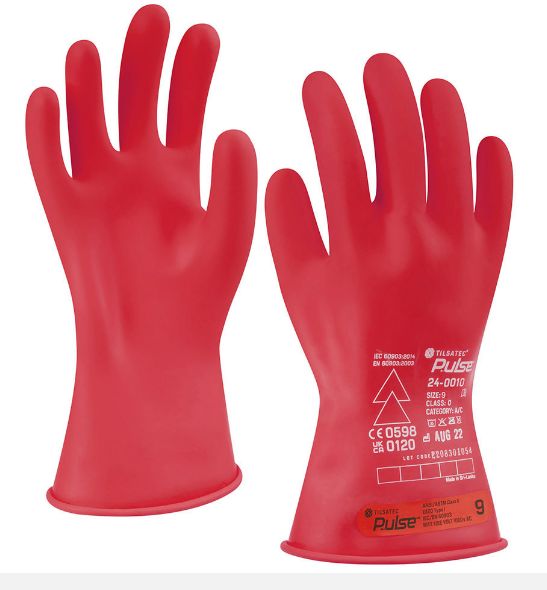 This is Pulse Red Rubber Electrical Safety Electrical Insulating Gloves Size 9 Large Latex Coating manufactured by Tilsatec. The manufacturer part number is 24-0010-09. Additionally, its glove is made using rubber material . Whereas, its glove coating is of latex . The primary recommended applications for the glove is electrical safety . It features pulse range. The main colour of the glove is red . The glove has a 9, large size.