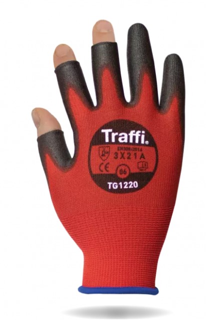 The TraffiGloves X-Dura 3-digit lightweight PU coated, cut level A safety glove with 3 exposed fingertips for improved dexterity. Good level of abrasion resistance for use in dry conditions. The close fitting design and good grip makes it an ideal choice for general handling tasks. Size of 7 Lightweight and breathable liner Fine product assembly work Automotive, construction and utility