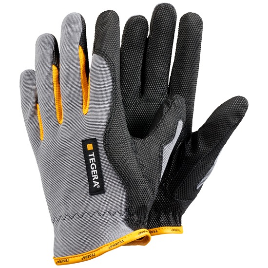 This is TEGERA Black Grey Yellow Synthetic Leather Assembly Work Gloves Size 11 manufactured by Tegera. The manufacturer part number is 9124-11. Additionally, its glove is made using synthetic leather material . It includes 6pairs gloves . The primary recommended applications for the glove is assembly . It features tegera range. The main colour of the glove is black, grey, yellow . The glove has a 11 size.