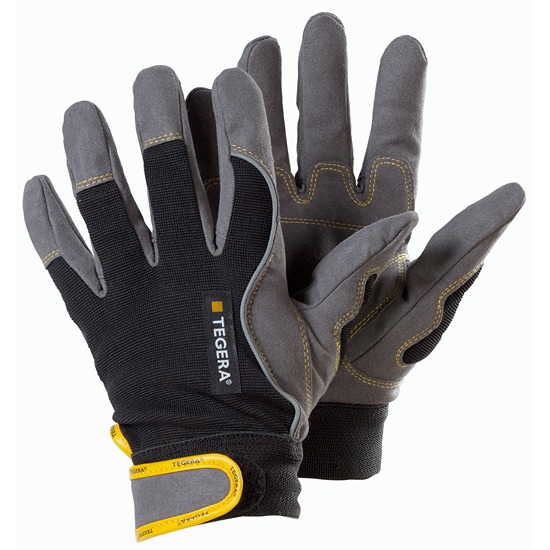 This is TEGERA Black Grey Yellow Synthetic Leather Assembly Work Gloves Size 8 manufactured by Tegera. The manufacturer part number is 9200-8. Additionally, its glove is made using synthetic leather material . It includes 6pairs gloves . The primary recommended applications for the glove is assembly . It features tegera range. The main colour of the glove is black, grey, yellow . The glove has a 8 size.