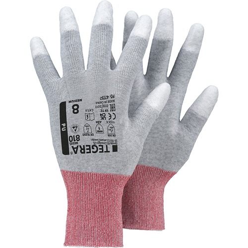 This is TEGERA Grey Carbon Nylon ESD Protection Work Gloves Size 6 Polyurethane Coating manufactured by Tegera. The manufacturer part number is 810-6. It includes 12 gloves . The product is made from highly stable and reliable polyurethane, nylon, carbon. work gloves is a versatile product designed to provide user-defined applications.