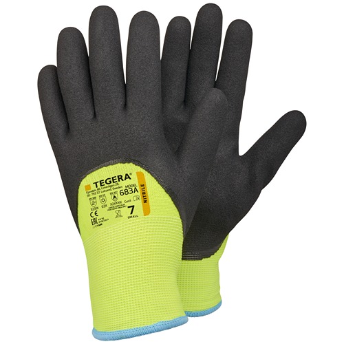 This is TEGERA Black Yellow Acrylic Polyester (Liner) Cold Resistant Work Gloves Size 11 Nitrile Coating manufactured by Tegera. The manufacturer part number is 683A-11. It includes 12 gloves . It has a decent yellow, black colour. The product is made from highly stable and reliable polyester (liner), acrylic. It is coated with robust nitrile material. work gloves is a versatile product designed to provide user-defined applications. The product is available in 11 size.