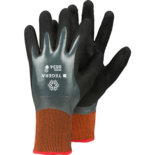 This is TEGERA Black Grey Orange Acrylic Polyester (Liner) Cold Resistant Work Gloves Size 11 Nitrile Coating manufactured by Tegera. The manufacturer part number is 8834-11. It includes 6 gloves . The product tegera, is a highly preferred choice for users. It has a decent grey, orange, black colour. The product is made from highly stable and reliable polyester (liner), acrylic. It is coated with robust nitrile material. work gloves is a versatile product designed to provide user-defined applications. The product is available in 11 size.