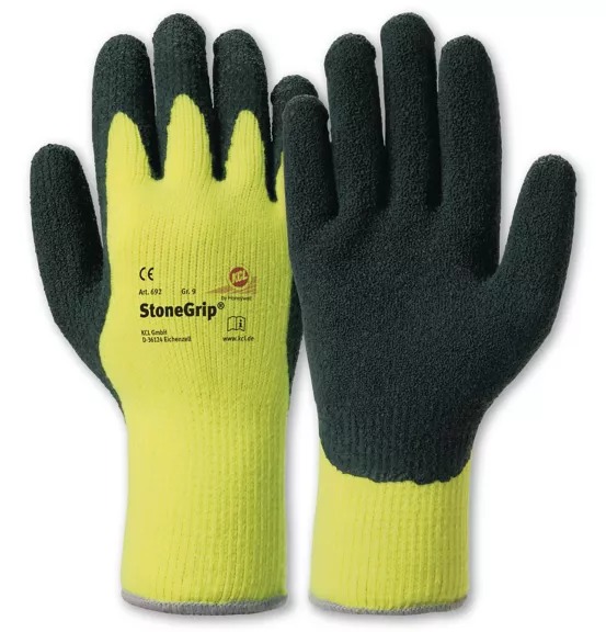 This is StoneGrip Black/Yellow Natural Latex Cold Resistant Work Gloves Size 11 manufactured by Honeywell Safety. The manufacturer part number is 069211141E. Additionally, its glove is made using natural latex material . It includes 1pair gloves . The primary recommended applications for the glove is cold resistant . It features stonegrip range. The main colour of the glove is black/yellow . The glove has a 11 size.