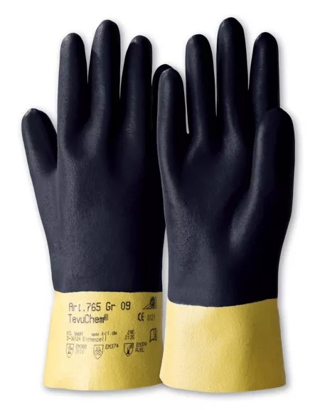 This is TevuChem Blue Yellow Nitrile Chemical Resistant Work Gloves Size 9 manufactured by Honeywell Safety. The manufacturer part number is 076509141X. Additionally, its glove is made using nitrile material . It includes 1pair gloves . The primary recommended applications for the glove is chemical resistant . It features tevuchem range. The main colour of the glove is blue, yellow . The glove has a 9 size.
