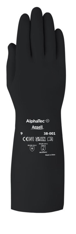 This is AlphaTec 38-001 Black Butyle Chemical Resistant Gloves Size 7 Polymer Coating manufactured by Ansell. The manufacturer part number is 38001PP070. Additionally, its glove is made using butyle material . Whereas, its glove coating is of polymer . It includes 1pair gloves . The primary recommended applications for the glove is chemical resistant . It features alphatec 38-001 range. The main colour of the glove is black . The glove has a 7 size.
