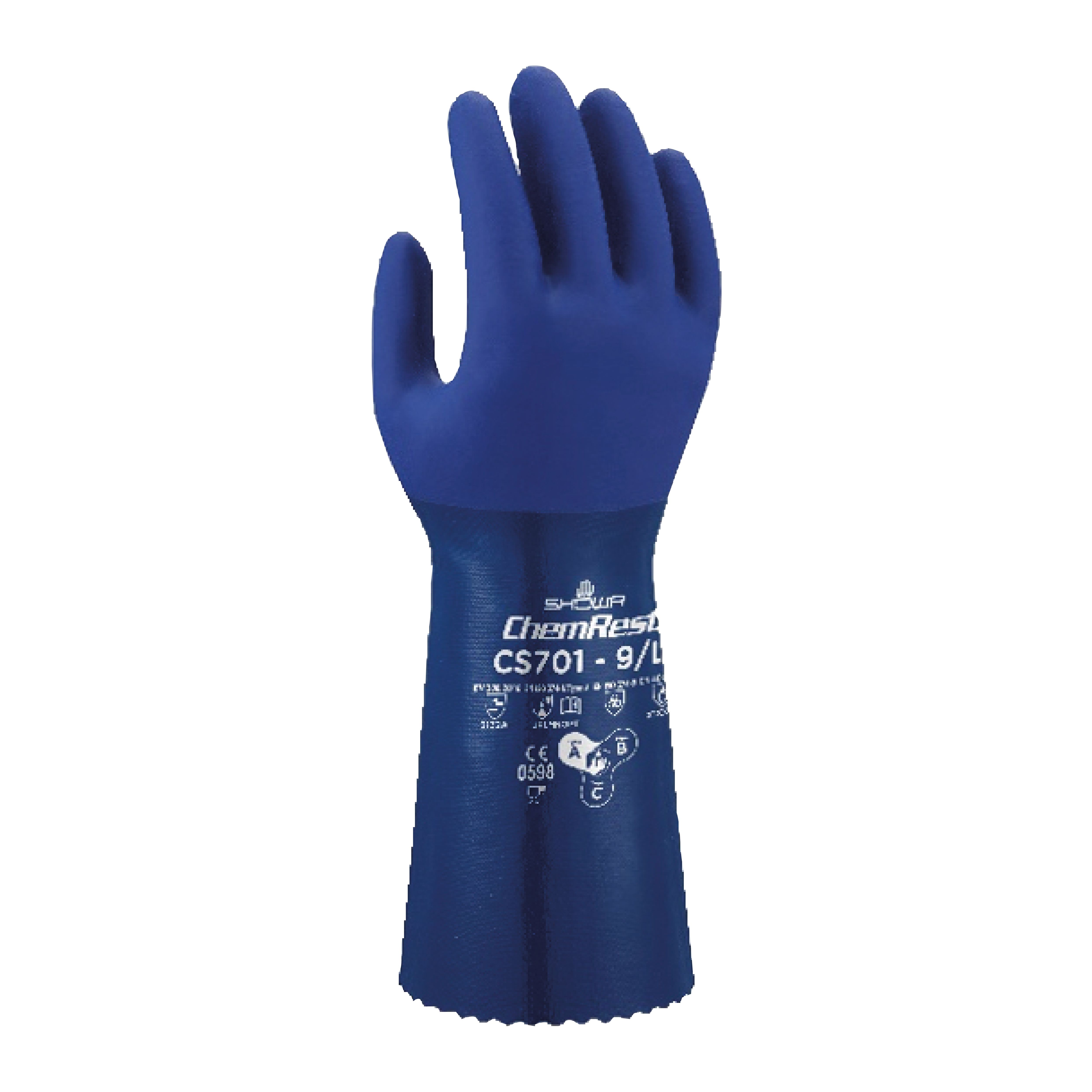 This is CS701 Blue Polyester Chemical Resistant Work Gloves Size XL Nitrile Coating manufactured by Showa. The manufacturer part number is SHOCS7014. Additionally, its glove is made using polyester material . Whereas, its glove coating is of nitrile . It includes 10pairs gloves . The primary recommended applications for the glove is chemical resistant . It features cs701 range. The main colour of the glove is blue . The glove has a xl size.