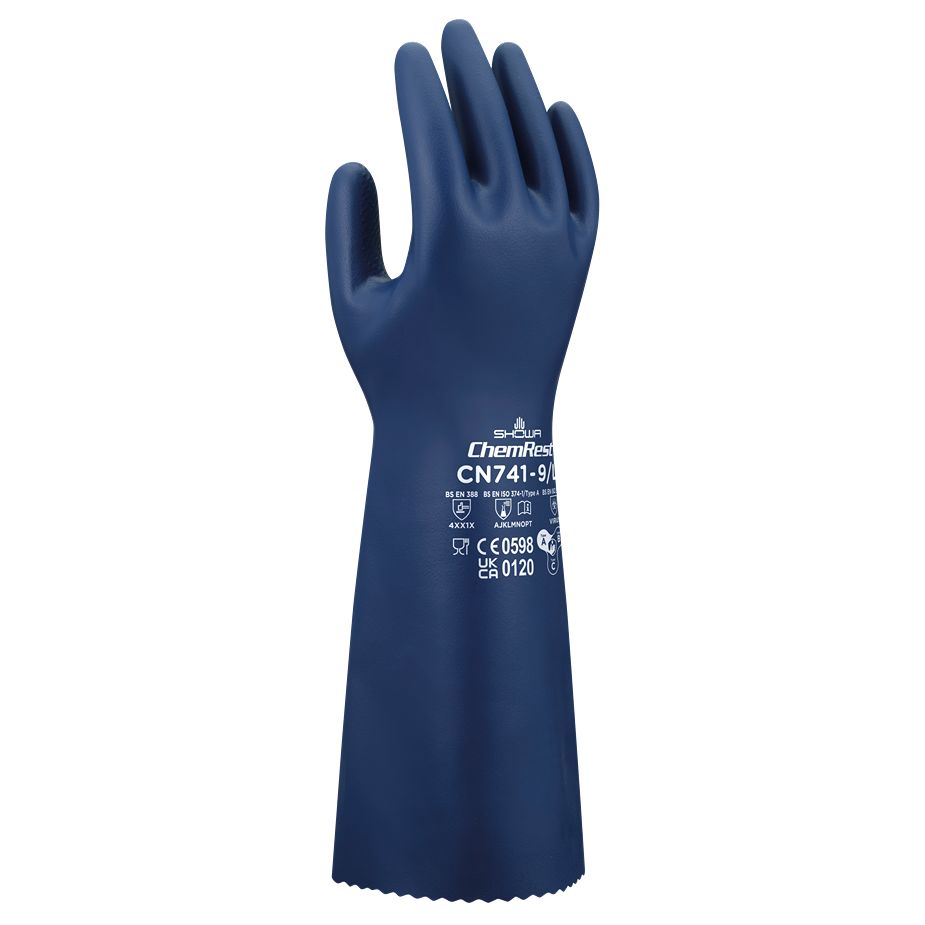 This is CN741 EBT Blue Cotton Chemical Resistant Work Gloves Size XL Nitrile Coating manufactured by Showa. The manufacturer part number is SHOCN7414. Additionally, its glove is made using cotton material . Whereas, its glove coating is of nitrile . It includes 72pairs gloves . The primary recommended applications for the glove is chemical resistant . It features cn741 ebt range. The main colour of the glove is blue . The glove has a xl size.