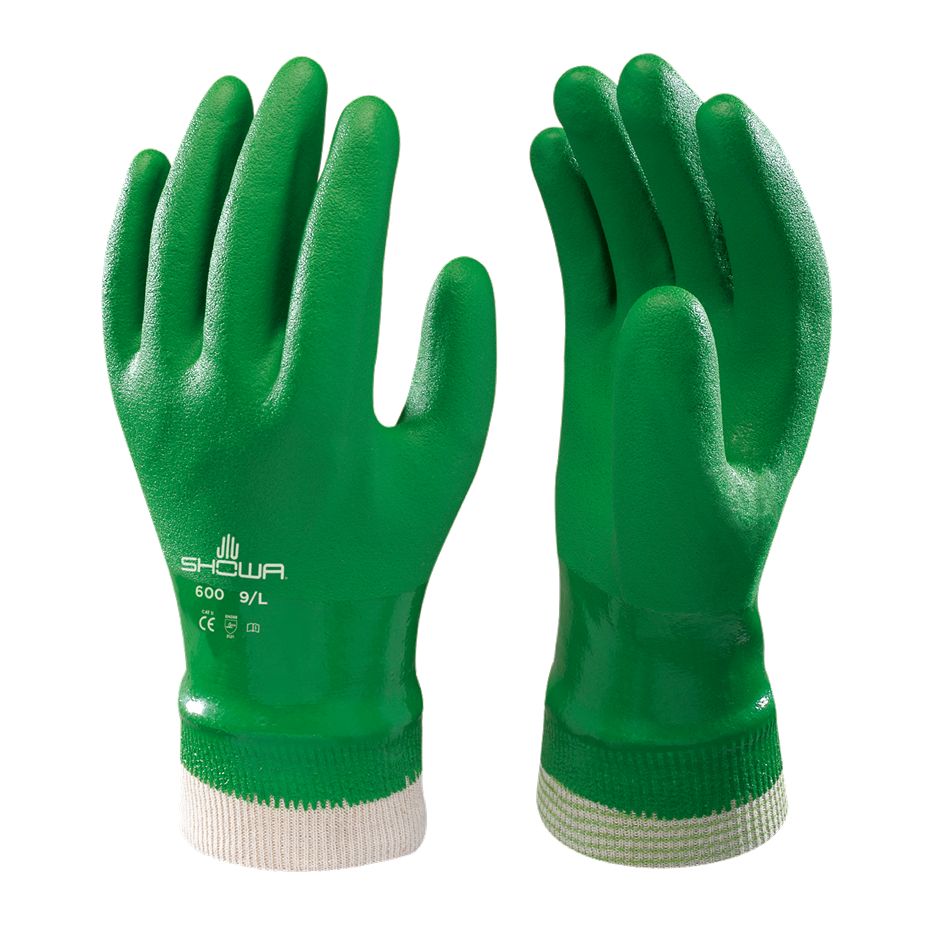 This is 600 Green Cotton Abrasion Resistant General Purpose Waterproof Work Gloves Size Large PVC Coating manufactured by Showa. The manufacturer part number is SHO6003. Additionally, its glove is made using cotton material . Whereas, its glove coating is of pvc . It includes 10pairs gloves . The primary recommended applications for the glove is abrasion resistant, general purpose, waterproof . It features 600 range. The main colour of the glove is green . The glove has a large size.