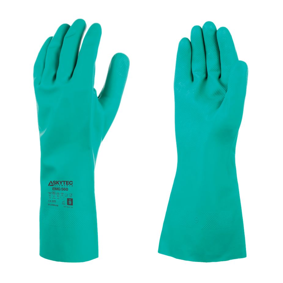 This is EMG560 Green Cotton Chemical Resistant Work Gloves Size Medium Nitrile Coating manufactured by Skytec. The manufacturer part number is EMG00560EF. Additionally, its glove is made using cotton material . Whereas, its glove coating is of nitrile . It includes 10pairs gloves . The primary recommended applications for the glove is chemical resistant . It features emg560 range. The main colour of the glove is green . The glove has a medium size.