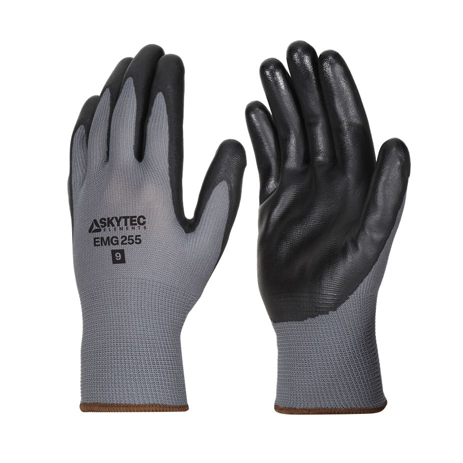 This is EMG255 Black Grey Polyester Abrasion Resistant Extra Grip Work Gloves Size Small Nitrile Foam Coating manufactured by Skytec. The manufacturer part number is EMG00255FD. Additionally, its glove is made using polyester material . Whereas, its glove coating is of nitrile foam . It includes 10pairs gloves . The primary recommended applications for the glove is abrasion resistant, extra grip . It features emg255 range. The main colour of the glove is black, grey . The glove has a small size.