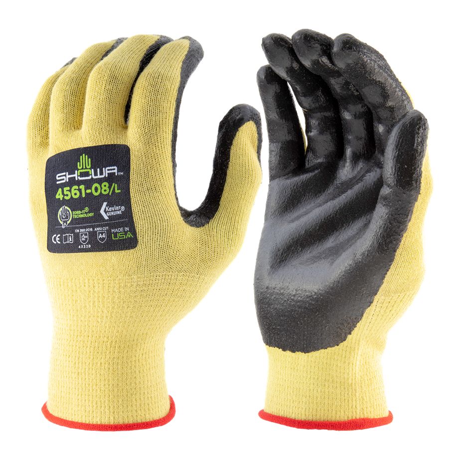 This is 4561 Black Yellow Kevlar Abrasion Resistant Cut Resistant Heat Resistant Work Gloves Size Small Foam Nitrile manufactured by Showa. The manufacturer part number is SHO45611. Additionally, its glove is made using kevlar material . Whereas, its glove coating is of foam nitrile . It includes 12pairs gloves . The primary recommended applications for the glove is abrasion resistant, cut resistant, heat resistant . It features 4561 range. The main colour of the glove is black, yellow . The glove has a small size.