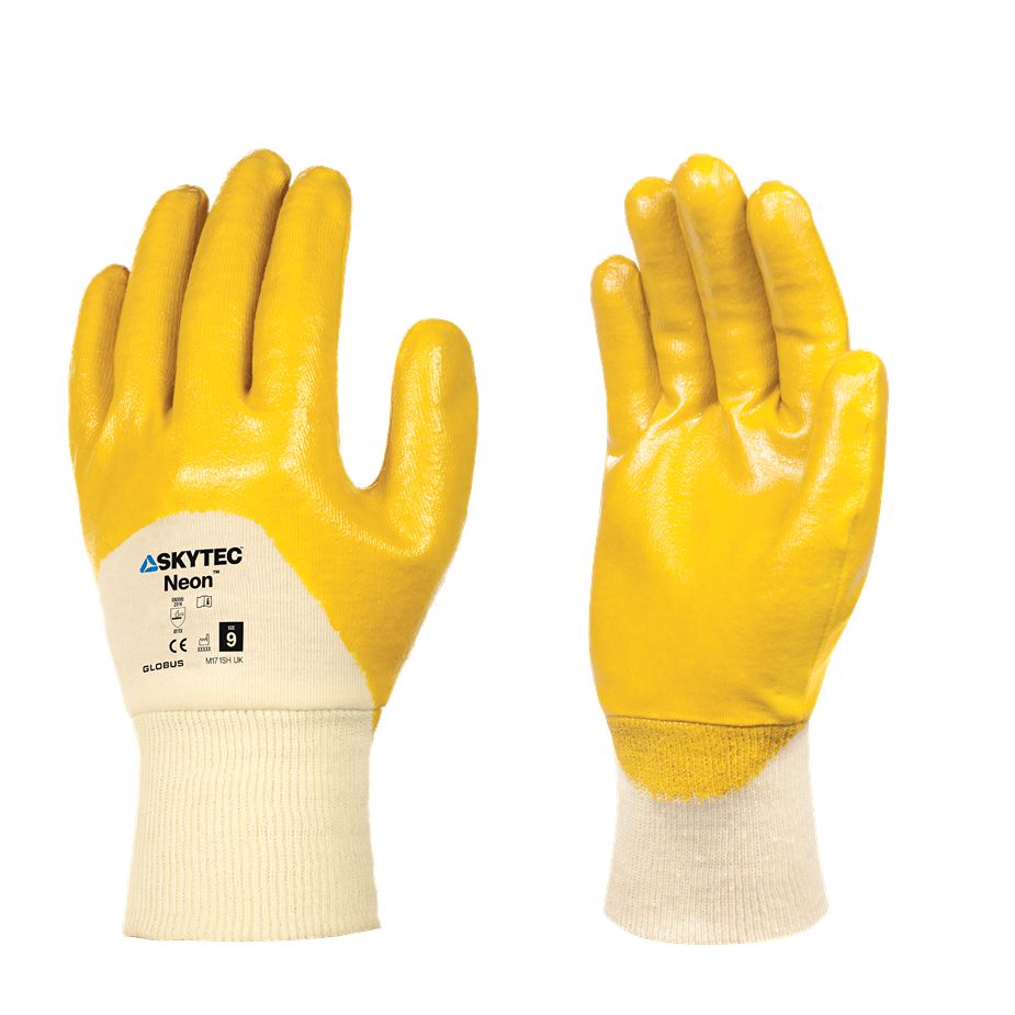 This is Neon Cream Yellow Cotton Abrasion Resistant Anti-Slip Damp Environment Waterproof Work Gloves Size Small manufactured by Skytec. The manufacturer part number is SKY241. Additionally, its glove is made using cotton material . Whereas, its glove coating is of nitrile . It includes 10pairs gloves . The primary recommended applications for the glove is abrasion resistant, anti-slip, damp environment, waterproof . It features neon range. The main colour of the glove is cream, yellow . The glove has a small size.