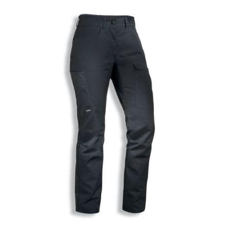 Women's trousers basic - uvex basic model: 7454, Art. 98150 colour: graphite material: 60% cotton, 40% polyester approx. 280 gsm Regular fit Ergonomic cut Insert in crotch area for better movement Elastic rubber in the back waistband Patent button closure Left side pocket with flap and snap closure Ruler pocket on the right Back pockets on left and right side Uvex embroidery on ruler pocket care: washing: 60 ° C, do not bleach, tumble dry at low heat, iron at medium temperature, dry cleaning with perchlorethylene, suitable for industrial laundry Size: 36 to 54, 19 to 26