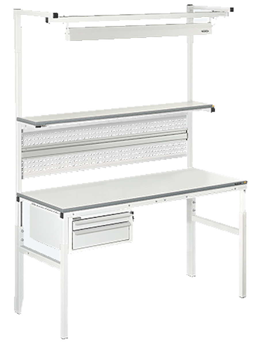 This is Workbench Complete Kit Work Bench 1500mm x 700mm x 650 → 950mm manufactured by RS Pro. The manufacturer part number is 125-2407. It has an adjustable height feature yes . It is portable no . In addition, the height is 650 → 900mm. Furthermore, the product is 1500mm wide. Its accurate length is 700mm. Its maximum load is approximately 300kg . It comes in esd workbench with shelf configuration.