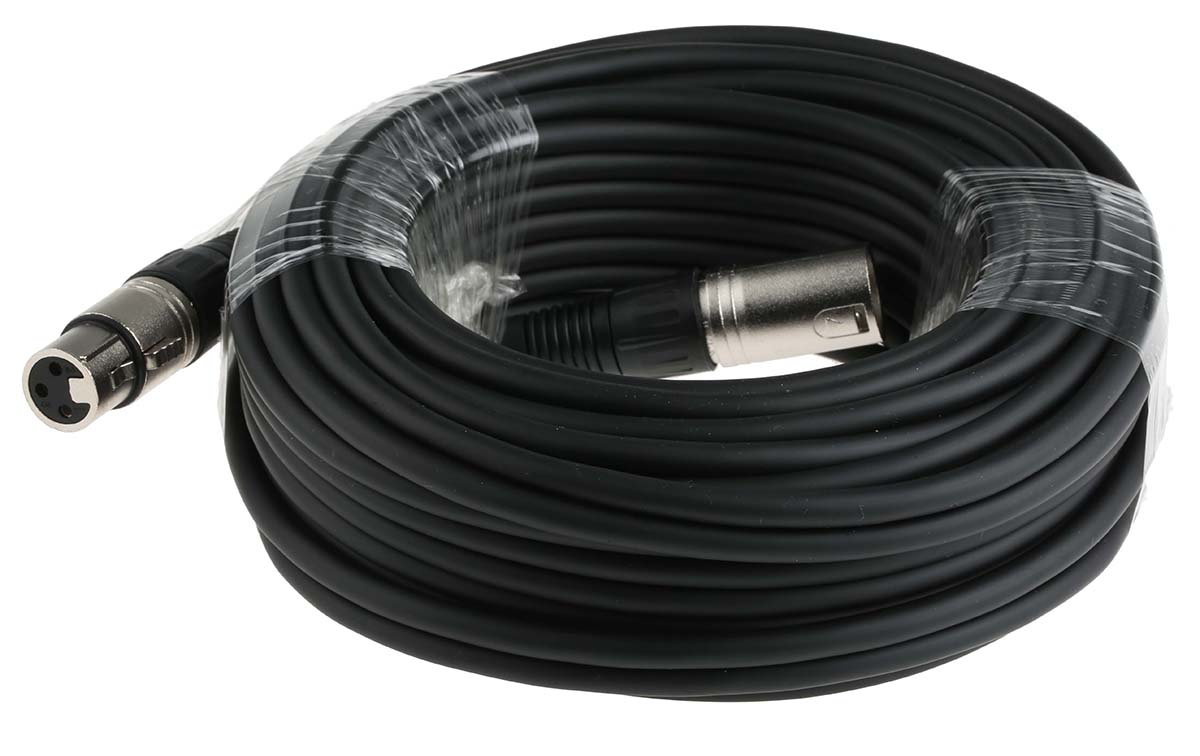 This is 20m Black Female XLR to Male XLR Audio Video Cable Assembly manufactured by RS Pro. The manufacturer part number is 742-4523. Connector 2 is a male connector. This connector 1 is a female. The sheath has an adorable black colour. Its accurate length is 20m. Whereas the outer sheath is manufactured from pvc material. While the Connector 2 is 3 pin xlr. Connector 1 is 3 pin xlr.