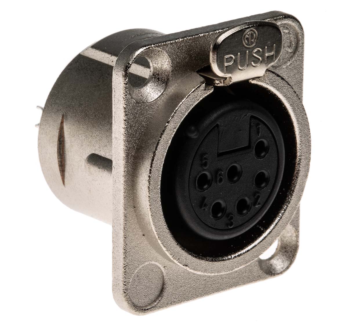This is 6 Way Panel Mount XLR Connector Female Silver over Nickel Plated Contacts 50 V manufactured by Neutrik. The manufacturer part number is NC6FD-L-1. The product has a current rating of 7.5a. Whereas, the minimum operating temperature of the product is -30°c. The product is available in panel mount configuration. Moreover, the product has a nominal 50 v voltage rating. In addition, female is the available "Gender" of the product. It has a decent natural colour. The product also features robust zinc housing material. The high-quality silver over nickel is used as contact plating material. It allows solder termination method. The product contains 6 contacts. It has a maximum operating temperature of +80°c. It has straight body orientation. The product is made from sturdy brass materials.