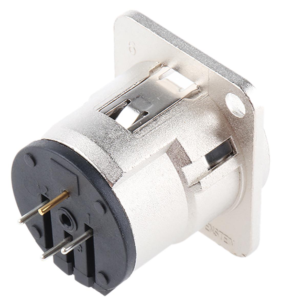 This is 3 Way Through Hole XLR Connector Male Silver over Nickel Plated Contacts 50 V manufactured by Neutrik. The manufacturer part number is NC3MDV. The product has a current rating of 6a. Whereas, the minimum operating temperature of the product is -30°c. The product is available in through hole configuration. Moreover, the product has a nominal 50 v voltage rating. In addition, male is the available "Gender" of the product. It has straight body orientation. The product also features robust zinc housing material. The high-quality silver over nickel is used as contact plating material. It allows solder termination method. The product contains 3 contacts. It has a maximum operating temperature of +80°c. The product is made from sturdy brass materials.