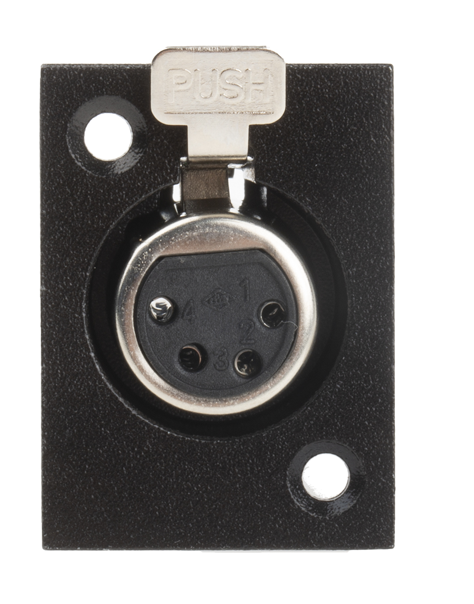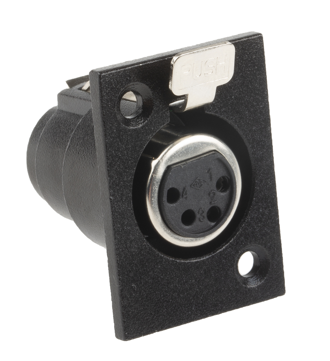 This is 4 Way Panel Mount XLR Connector Female Silver Plated Contacts manufactured by RS Pro. The manufacturer part number is 457-954. The product is available in panel mount configuration. In addition, female is the available "Gender" of the product. It has a decent black colour. The product also features robust zinc housing material. The high-quality silver is used as contact plating material. It allows solder termination method. The product contains 4 contacts. It has straight body orientation. The product is made from sturdy brass materials.