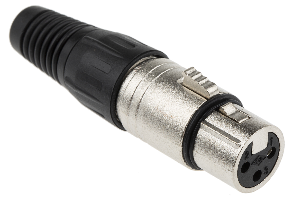 This is 3 Way Cable Mount XLR Connector Female Silver Plated Contacts 250 V ac manufactured by RS Pro. The manufacturer part number is 458-024. The product has a current rating of 16a. Whereas, the minimum operating temperature of the product is -30°c. The product is available in cable mount configuration. Moreover, the product has a nominal 250 v ac voltage rating. In addition, female is the available "Gender" of the product. It has a decent black colour. The product also features robust zinc housing material. The high-quality silver is used as contact plating material. It allows solder termination method. The product contains 3 contacts. It has a maximum operating temperature of +80°c. It has straight body orientation. The product is made from sturdy brass materials.