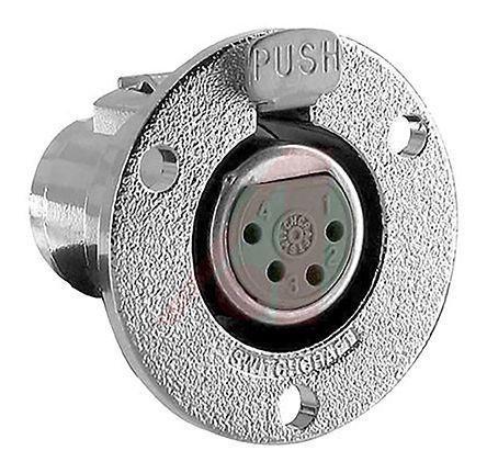 This is 4 Way Panel Mount XLR Connector Female Silver Plated Contacts 125 V ac manufactured by Switchcraft. The manufacturer part number is C4F. The product has a current rating of 10a. The product is available in panel mount configuration. Moreover, the product has a nominal 125 v ac voltage rating. In addition, female is the available "Gender" of the product. It has straight body orientation. The product also features robust zinc housing material. The high-quality silver is used as contact plating material. It allows solder termination method. The product contains 4 contacts. The product is made from sturdy phosphor bronze materials.