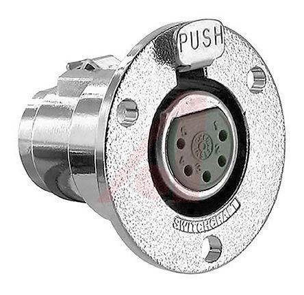 This is 5 Way Panel Mount XLR Connector Female Silver Plated Contacts 125 V ac manufactured by Switchcraft. The manufacturer part number is C5F. The product has a current rating of 7.5a. The product is available in panel mount configuration. Moreover, the product has a nominal 125 v ac voltage rating. In addition, female is the available "Gender" of the product. It has straight body orientation. The product also features robust zinc housing material. The high-quality silver is used as contact plating material. It allows solder termination method. The product contains 5 contacts. The product is made from sturdy phosphor bronze materials.