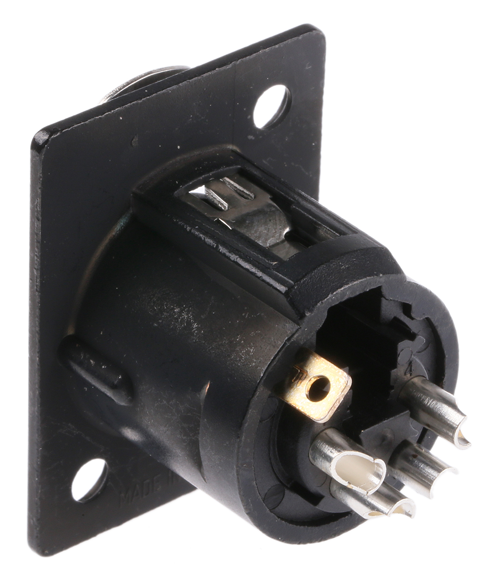 This is 4 Way Panel Mount XLR Connector Female Silver over Nickel Plated Contacts 50 V manufactured by Neutrik. The manufacturer part number is NC4FP1BAG. The product has a current rating of 10a. Whereas, the minimum operating temperature of the product is -30°c. The product is available in panel mount configuration. Moreover, the product has a nominal 50 v voltage rating. In addition, female is the available "Gender" of the product. It has a decent black metallic colour. The product also features robust zinc housing material. The high-quality silver over nickel is used as contact plating material. It allows solder termination method. The product contains 4 contacts. It has a maximum operating temperature of +80°c. It has straight body orientation. The product is made from sturdy brass materials.