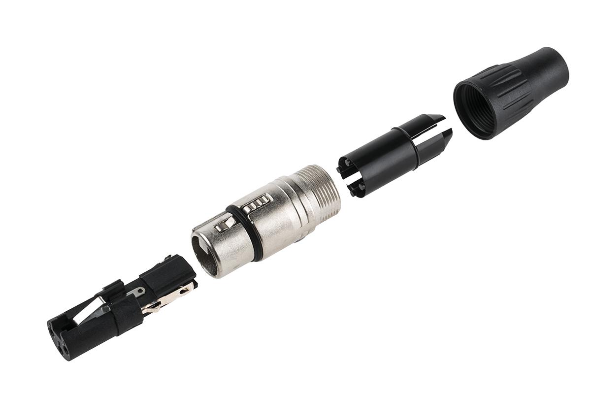 This is 3 Way Cable Mount XLR Connector Female Gold Silver Plated Contacts manufactured by Neutrik. The manufacturer part number is NC3FXY. The product has a current rating of 3a. The product is available in cable mount configuration. In addition, female is the available "Gender" of the product. It has straight body orientation. The product also features robust nylon housing material. The high-quality gold, silver is used as contact plating material. It allows idt termination method. The product contains 3 contacts. The product is made from sturdy bronze materials.