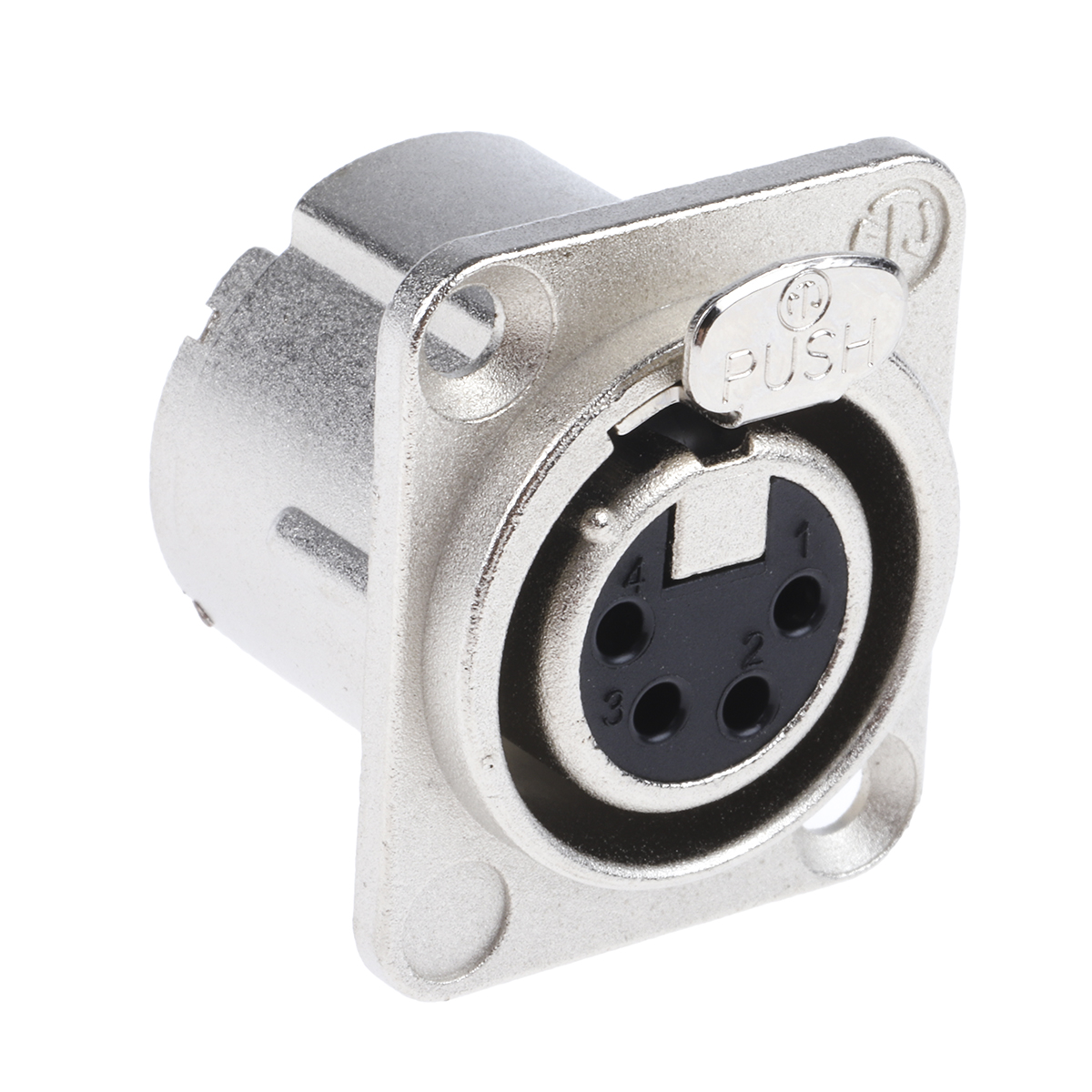 This is 4 Way Panel Mount XLR Connector Female Silver over Nickel Plated Contacts 50 V manufactured by Neutrik. The manufacturer part number is NC4FD-LX. The product has a current rating of 10a. Whereas, the minimum operating temperature of the product is -30°c. The product is available in panel mount configuration. Moreover, the product has a nominal 50 v voltage rating. In addition, female is the available "Gender" of the product. It has straight body orientation. The product also features robust nylon housing material. The high-quality silver over nickel is used as contact plating material. It allows solder termination method. The product contains 4 contacts. It has a maximum operating temperature of +80°c. The product is made from sturdy brass materials.