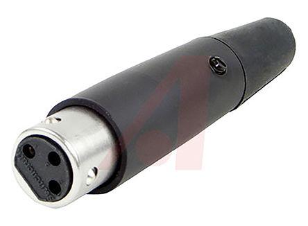 This is 3 Way Cable Mount XLR Connector Female Silver Plated Contacts 125 V ac manufactured by Switchcraft. The manufacturer part number is A3FBX. The product has a current rating of 15a. The product is available in cable mount configuration. Moreover, the product has a nominal 125 v ac voltage rating. In addition, female is the available "Gender" of the product. It has a decent black colour. The product also features robust zinc housing material. The high-quality silver is used as contact plating material. It allows solder termination method. The product contains 3 contacts. It has straight body orientation. The product is made from sturdy copper alloy materials.