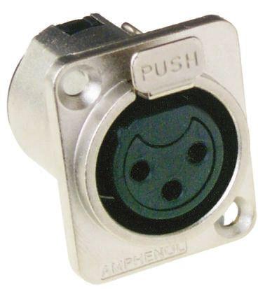 This is 3 Way Panel Mount XLR Connector Female Tin Plated Contacts manufactured by Amphenol. The manufacturer part number is AC3FDZ. The product has a current rating of 15a. Whereas, the minimum operating temperature of the product is -25°c. The product is available in panel mount configuration. In addition, female is the available "Gender" of the product. It has straight body orientation. The product also features robust zinc alloy housing material. The high-quality tin is used as contact plating material. It allows solder termination method. The product contains 3 contacts. It has a maximum operating temperature of +75°c. The product is made from sturdy phosphor bronze materials.