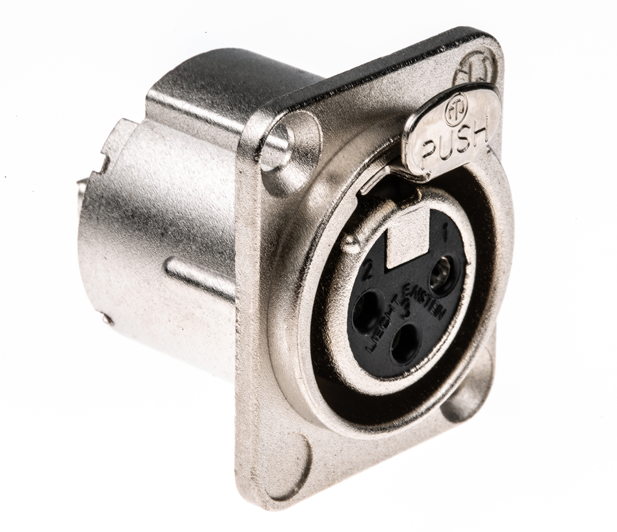 This is 3 Way Panel Mount XLR Connector Female Silver over Nickel Plated Contacts 50 V manufactured by Neutrik. The manufacturer part number is NC3FD-LX. The product has a current rating of 16a. Whereas, the minimum operating temperature of the product is -30°c. The product is available in panel mount configuration. Moreover, the product has a nominal 50 v voltage rating. In addition, female is the available "Gender" of the product. It has straight body orientation. The product also features robust nylon housing material. The high-quality silver over nickel is used as contact plating material. It allows solder termination method. The product contains 3 contacts. It has a maximum operating temperature of +80°c. The product is made from sturdy bronze materials.